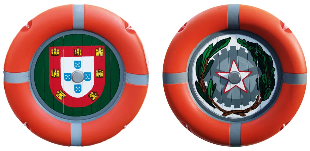 At the heart of Euro Vision is a 42-foot sailing ship resembling a Viking longship, symbolizing Europe’s historical strength and cultural identity while highlighting its contemporary divisions. The ship is adorned with traditional wooden shields, each hand-painted with the coat of arms of an EU member state, intertwined with modern lifebuoys. This contrast between shields and lifebuoys evokes both defense and survival, where shields represent protection, and lifebuoys, the hope for resilience.