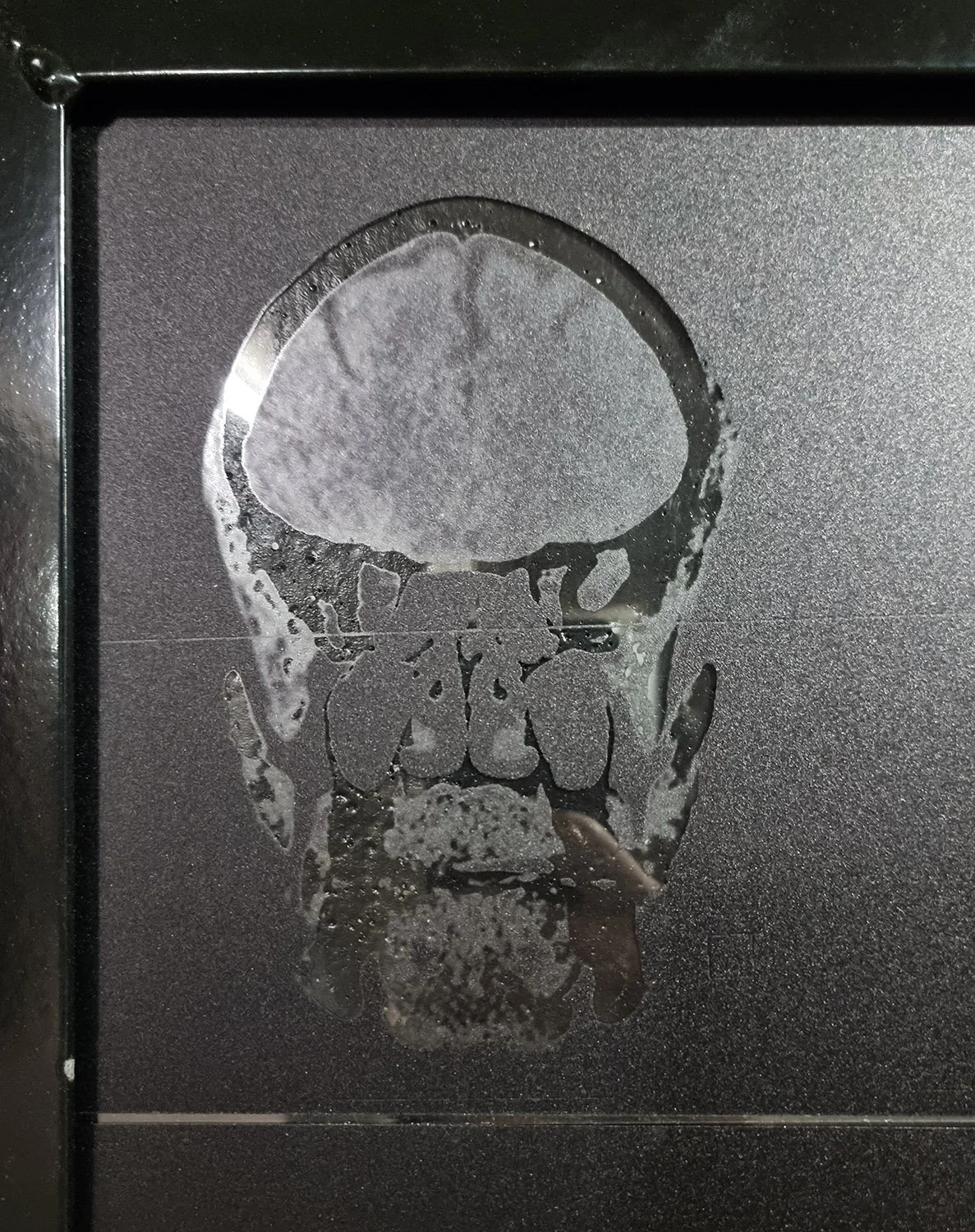 Iron frame, fibreglass image, x-ray prints of the artists skull